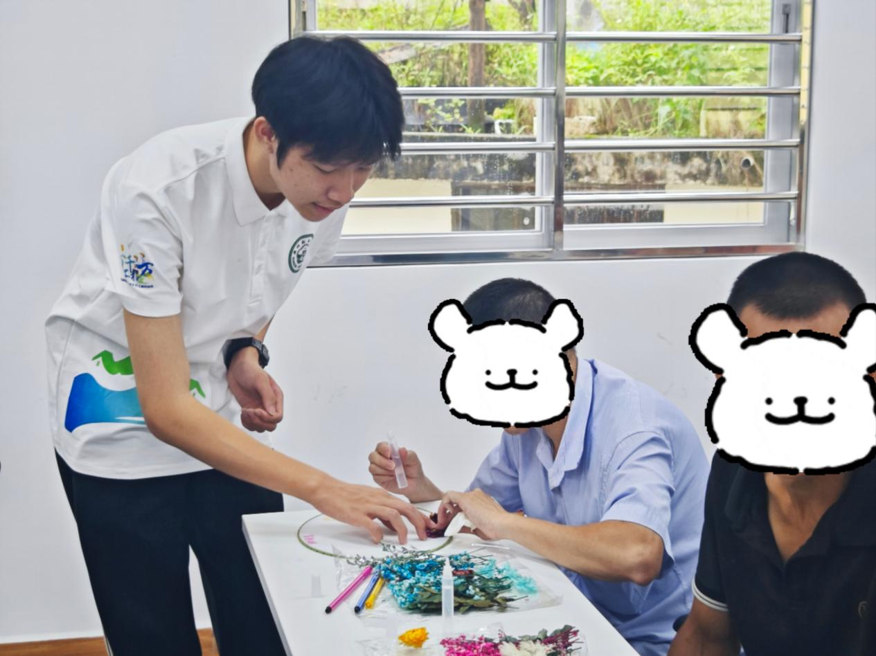 制作环节正式开始,突击队队员分散在学员身边,以“陪伴者” 的身份提供恰到好处的帮助。有学员手指不够灵活,队员便轻轻握住他们的手,一同将干花摆放在心仪的位置;有学员对色彩搭配举棋不定,队员就蹲在一旁,和他们一起比对不同组合的效果,“红色热烈,白色清雅,您喜欢的就是最合适的”;有学员不小心将胶水蹭到扇面,队员立刻递上纸巾,笑着说 “一点小插曲,不影响整体的美”。