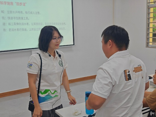 在“防溺水”知识讲解环节,突击队成员结合图片、案例和互动提问,生动地为学员们科普了夏季防溺水的重要性和注意事项,以及如何识别危险水域、如何正确求助、如何自我保护等关键知识。
