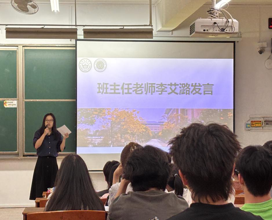 班主任李艾潞老师提醒同学们在大学生活中要注重身心健康,做好自我规划,尽快适应自主学习模式。