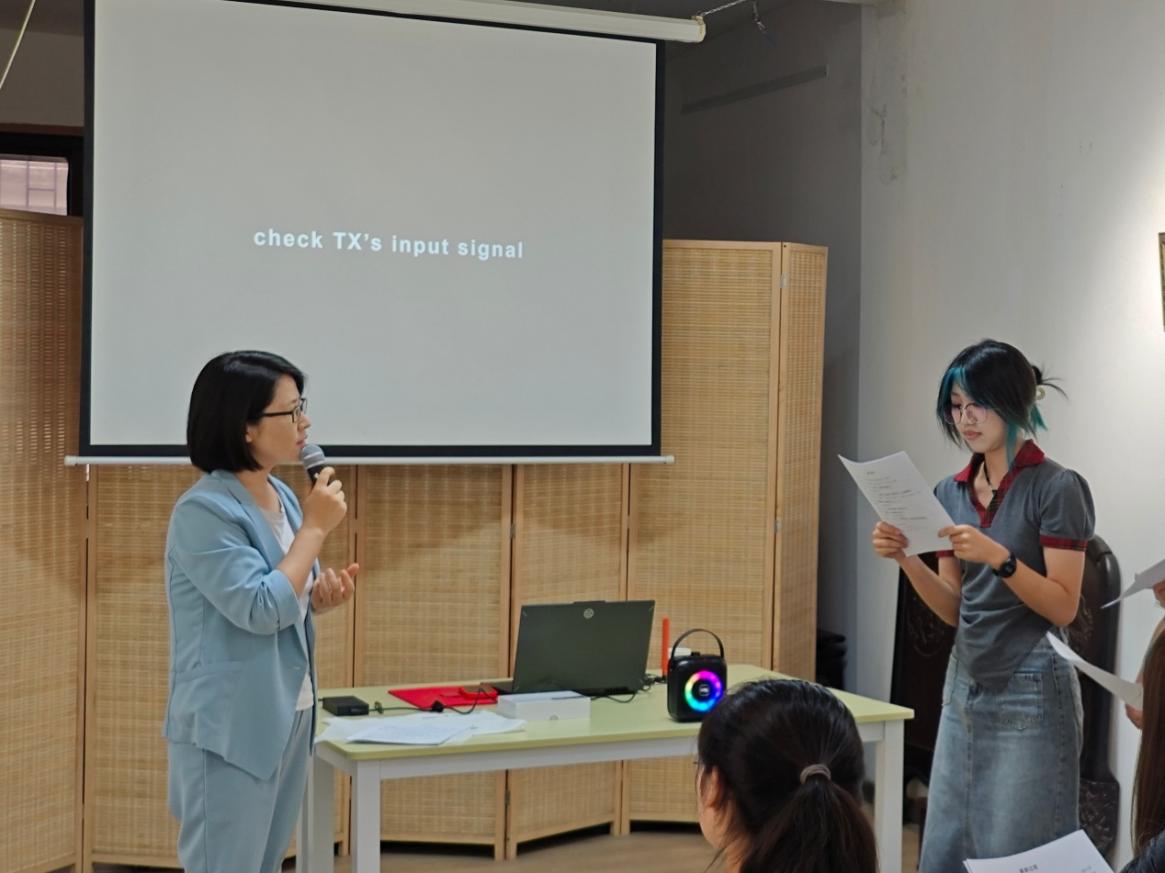 李柏玲同学(右)参加校外实践学习活动与老师互动