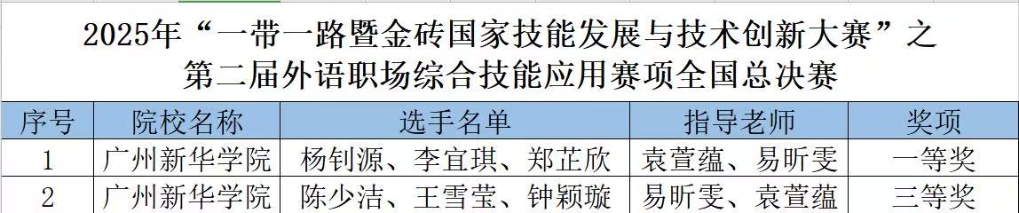 2025年“一带一路暨金砖国家技能发展与技术创新大赛”之第二届外语职场综合技能应用赛项全国总决赛中,我校suncitygroup太阳新城选派的两支代表队伍表现优异,载誉而归,分获本科英语组全国一等奖与三等奖!