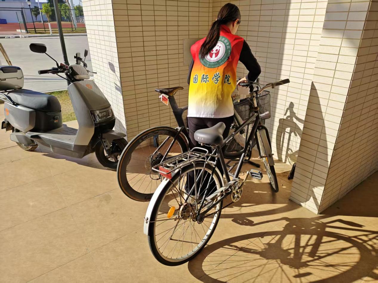 志愿者们组成整理小队,前往校园非机动车停放区等区域,对随意停放的车辆进行统一归位。大家合力挪动车辆、调整摆放角度,让原本杂乱的停车区域变得井然有序,大幅提升了校园的整体秩序感。