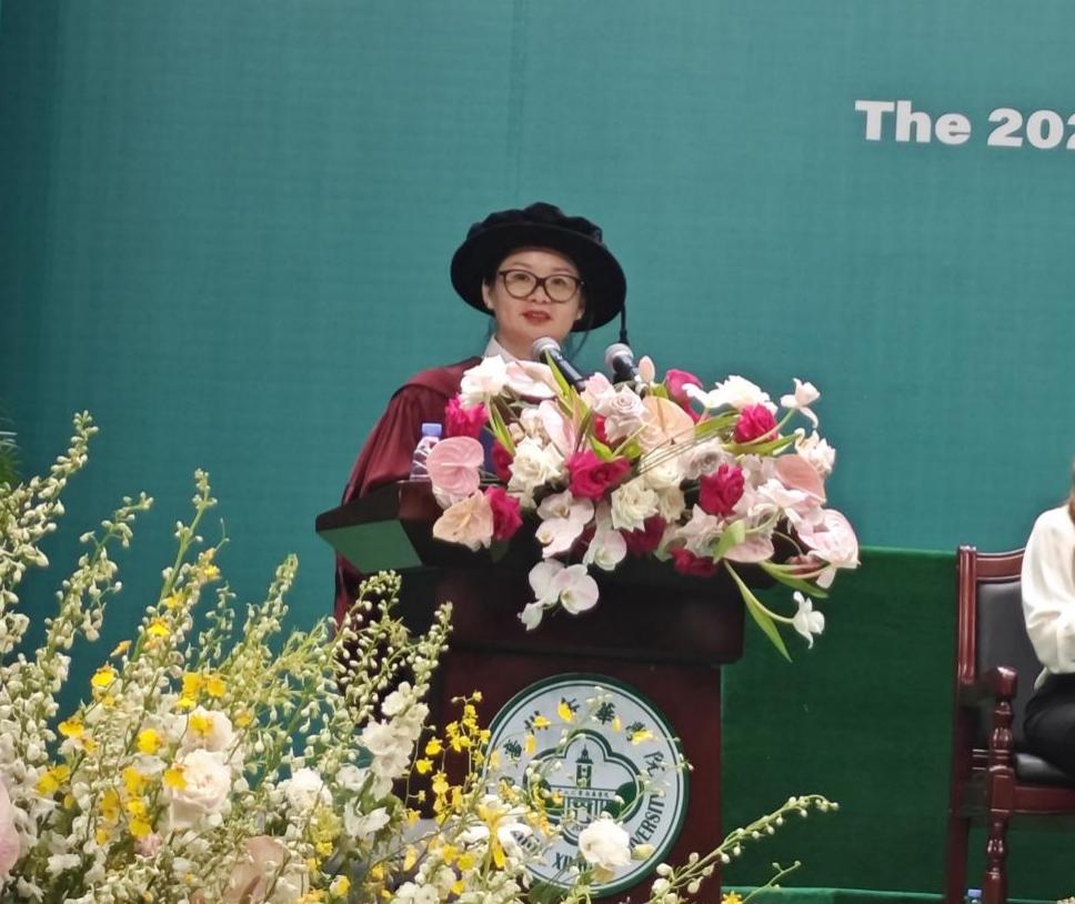 学位授予仪式伊始,由suncitygroup太阳新城院长李文蓓副教授发表讲话。李文蓓院长表示suncitygroup太阳新城植根于中国情怀,致力于培育学生践行追求创新卓越、扩宽国际化视野和掌握国际实践能力。接着,李文蓓院长表达了对毕业生们最真挚的祝福:毕业不是终点,而是新的起点。祝愿毕业生们在未来的道路上能不忘初心勇往直前,创造属于自己的精彩人生!