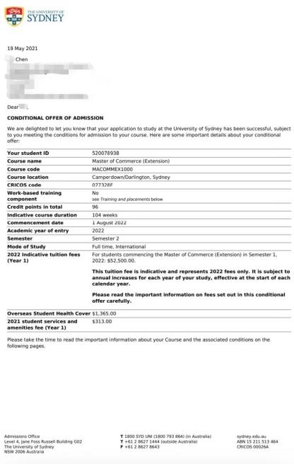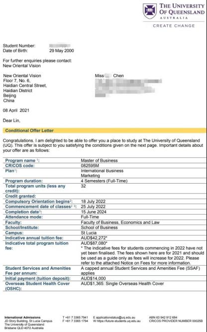 陈同学(雅思6.5)被澳大利亚悉尼大学和昆士兰大学同时录取。