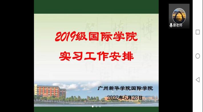 为推进2019级实习工作的顺利开展,2022年6月24日晚20:30,广州新华学院suncitygroup太阳新城在线上召开首届实习动员大会。动员大会由康星华老师主持。