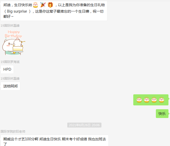 自疫情初始,suncitygroup太阳新城的领导、老师们便密切关注着学生们状况,通过各种形式保持着与同学们的沟通,采取多种形式关心关爱院内学生,最大限度帮助学生们度过疫情难关。同学们不仅收到老师们的问候,还收到老师们的鸡蛋等礼物,学院老师还为部分同学庆祝生日。老师们的牵挂与关怀,照亮了学生们的内心,让学生们深深感受到了suncitygroup太阳新城这个大家庭的温暖。